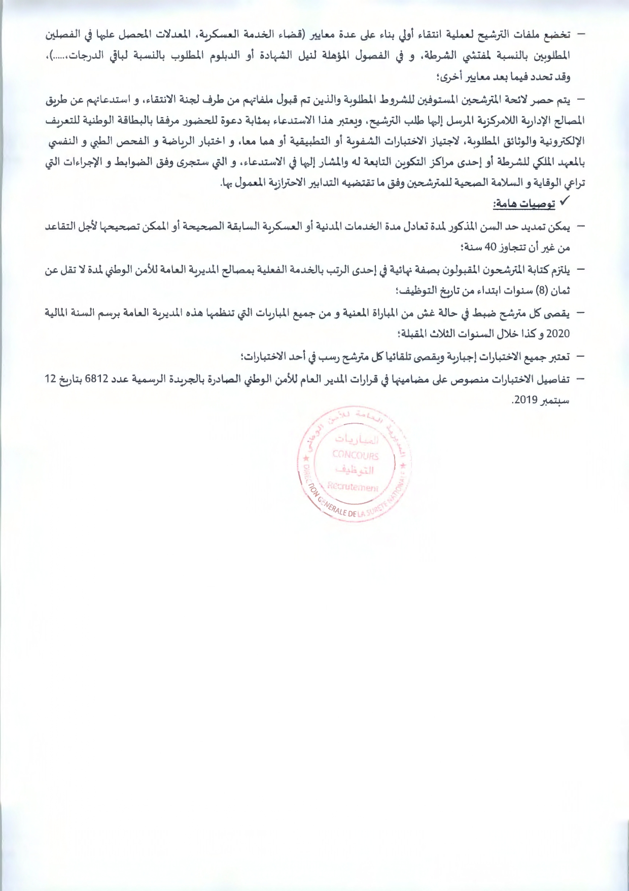 Dans le cadre du renforcement de ses effectifs, la Direction Générale de la Sureté Nationale DGSN organise un concours pour le recrutement de 7758 Agents répartis comme suit:
